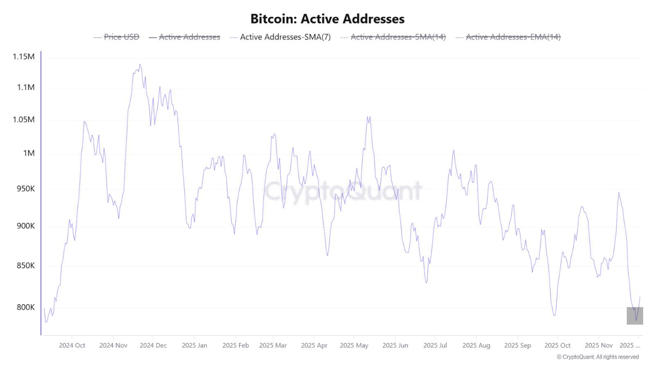 A sustained pickup in active addresses has previously aligned with the early stages of market recovery. When user activity stabilizes and begins to rise, it often mirrors an improvement in confidence. This places the current reading in a range that traders continue to monitor closely.