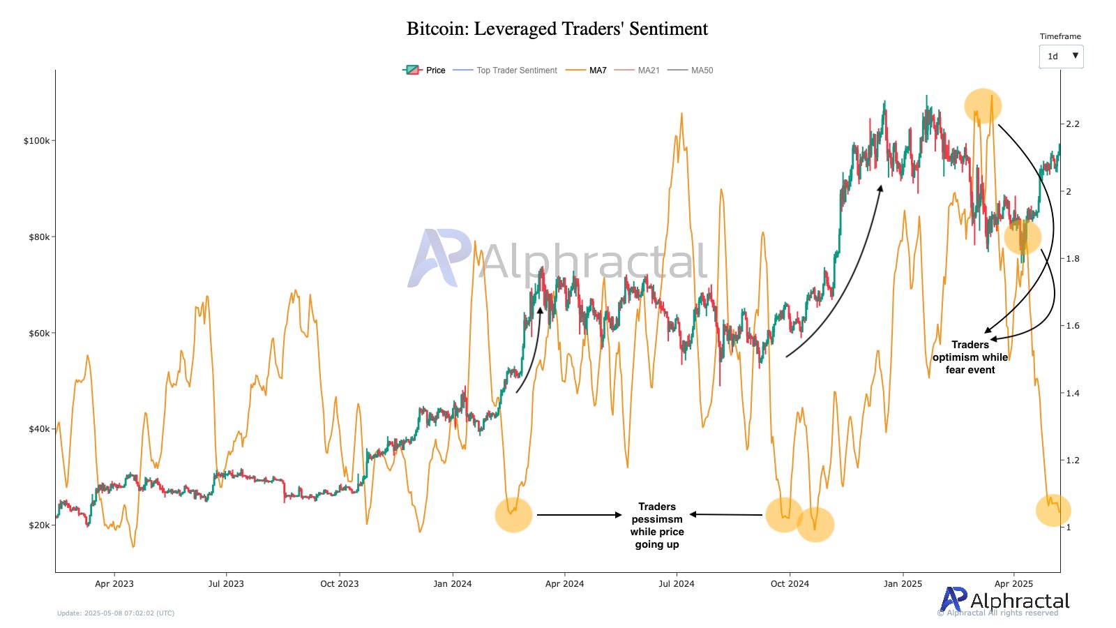 Bitcoin Leveraged Traders Sentiment Drops Despite Price Surge